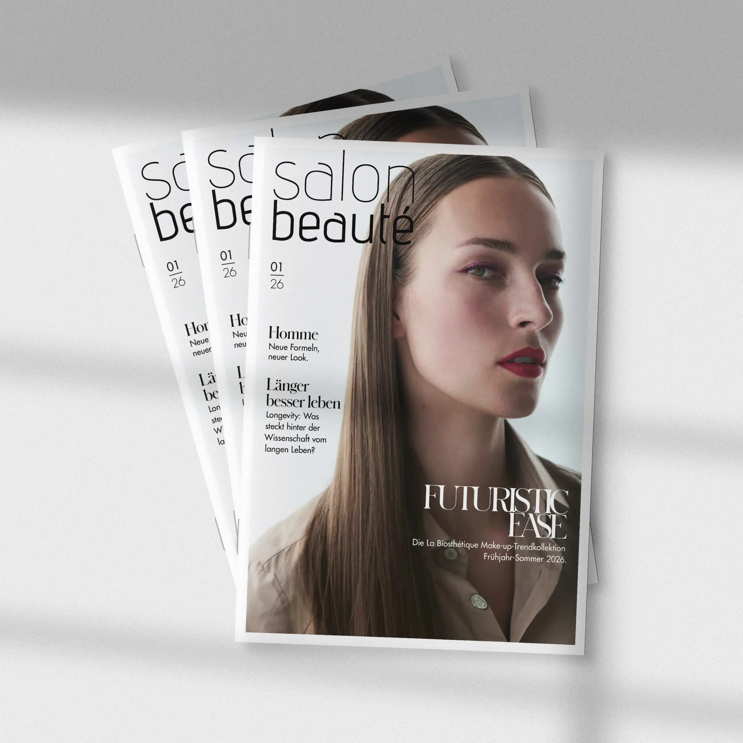«Der beste Weg, die Zukunft vorherzusagen, ist, sie zu gestalten», so der amerikanische Informatiker Alan Kay. Wir tun dies in den hinreißenden Farben und ausdrucksvollen Looks unserer Make-up-Trendkollektion FUTURISTIC EASE, die zu einem leichten und optimistischen Blick in die Zukunft einlädt. Machen Sie mit und begegnen Sie Ihrer Zukunft in anziehenden Neutrals, einem matten Scharlachrot voller Präsenz und dem frischen Lufthauch von schimmerndem Mintgrün! Um eine schöne, gesunde und vitale Zukunft geht es bei unseren Serien Soleil und Homme, die sich mit vielen Neuerungen präsentieren, und im großen Interview mit dem renommierten Longevity-Experten Nils Behrens. Schlagen Sie mit dieser Frühlingsausgabe von Salon Beauté eine neue Seite Ihrer Zukunft auf. Wir freuen uns darauf, sie hier im Salon gemeinsam mit Ihnen zu gestalten!